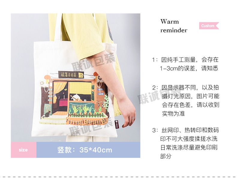 5.帆布环保袋的面料比较多,纹路也比较多,大部分都很细腻平整印刷成像效果很好。